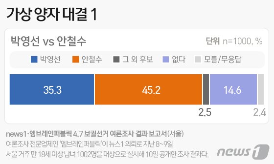 단일화에 성공할 경우 당선 가능성이 높은 반면, 둘 다 후보로 나설 경우엔 박영선 후보 당선 가능성이.